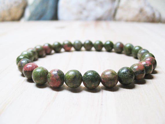 At a Great PriceSuper sale 6mm Stretchable green Unakite Bracelet Round, Smooth 7" for mens, womens, GF, BF, Adults.