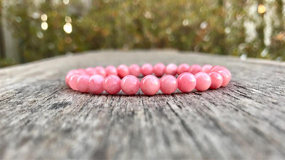 At a Great PriceSuper sale 6mm Stretchable Pink Pink Jade Bracelet Round, Smooth 7" for mens, womens, gf, bf & Adult.