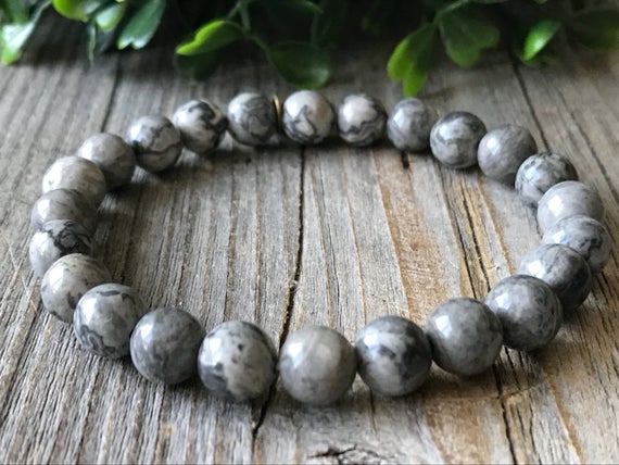 At a Great PriceSuper sale 8mm Stretchable grey grey jasper Bracelet Round, Smooth 18 cm for mens, womens, GF, BF, Adults.