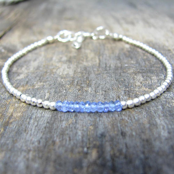 At a Great PriceTanzanite Beaded Bracelet, Sterling Silver Beaded Bracelet, Delicate Gemstone Bracelet, Dainty Sterling Silver Bracelet, Beaded Jewelry 2-3mm Code- WAR6602