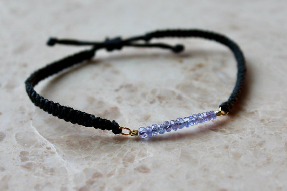 Tanzanite Jewelry | Tanzanite Bracelet | Tanzanite Bar Bracelet | Purple Bead Bracelet | Purple Stone Bracelet With Woven Black Band 3mm Code- WAR6061