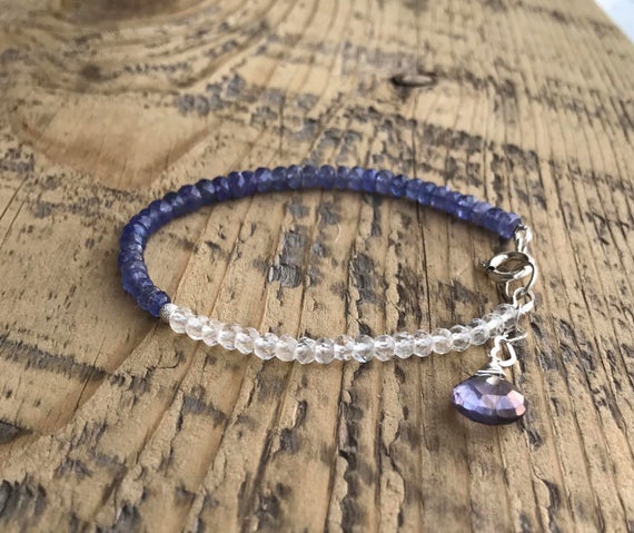 Tanzanite, White Topaz, Rainbow Blue Quartz Bracelet-Sterling Silver- energy Healing Jewelry- Boho- December Birthstone-Stacking 3.5-4 mm Code- WAR6796