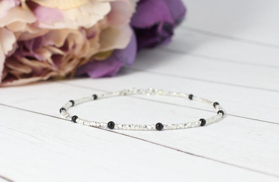 Tiny Black Onyx Beaded Bracelet,Pure Silver Beaded Bracelet,Minimalist beaded Bracelet,Beaded Bracelet,Stacking Bracelet,Bracelet for Woman 1-2 mm Code- WAR9010