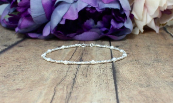 At a Great PriceTiny Freshwater pearl silver beaded bracelet,Pure silver beaded bracelet,Stacking Bracelet,Bracelet for Woman,Gift for her 2-2.5 mm Code- WAR9002