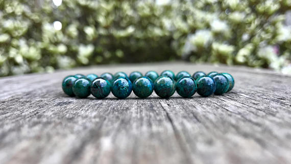 At a Great Pricetop quality 7mm Stretchable Green Chrysocolla Bracelet Round, Smooth 7" for mens, womens, gf, bf & Adult.