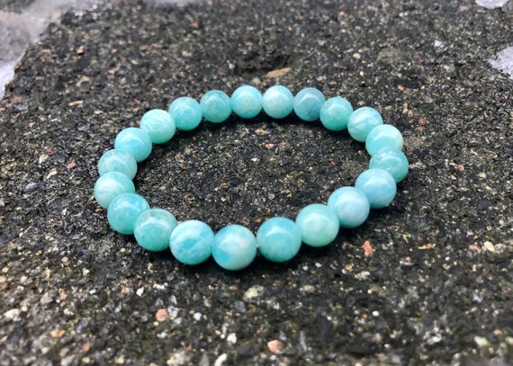 At a Great Pricetop quality 8mm Stretchable Blue Amazonite Bracelet Round, Smooth 7" for mens, womens, gf, bf & Adult.