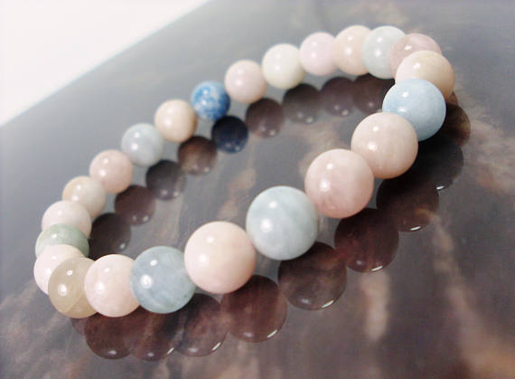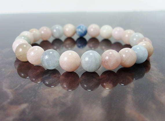At a Great Pricetop quality 8mm Stretchable Multi Morganite Aquamarine Bracelet Round, Smooth 7" for mens, womens.