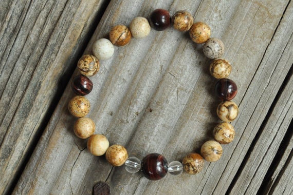 At a Great Pricetop quality 8mm Stretchable Multi Tiger Eye, Picture Jasper Bracelet Round, Smooth 7" for mens, womens, GF, BF, Adults.