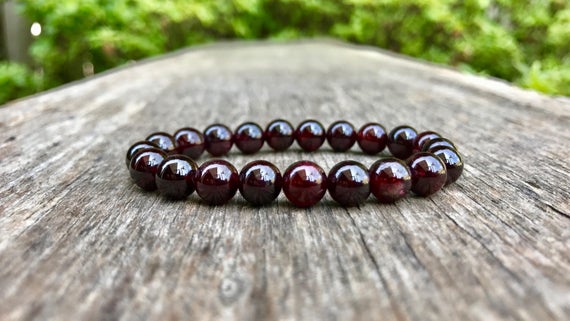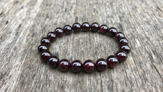top quality 8mm Stretchable Red Garnet Bracelet Round, Smooth 7" for mens, womens, gf, bf & Adult.