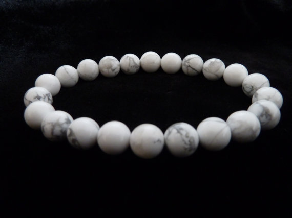 At a Great Pricetop quality 8mm Stretchable White Natural White Howlite Bracelet Round, Smooth 7" for mens, womens, gf, bf & Adult.