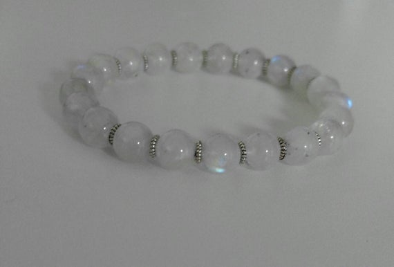 At a Great Pricetop quality Silver helling 8mm Stretchable White White Moonstone Bracelet Round, Smooth 7" for mens, womens.