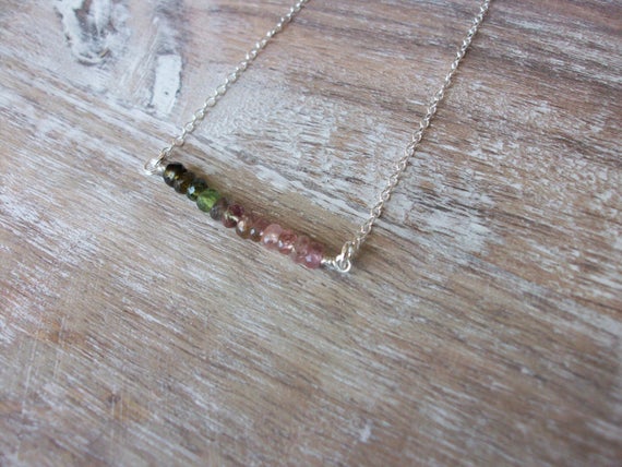 At a Great PriceTourmaline Bar Necklace/Sterling Silver Tourmaline Bar/Watermelon Tourmaline Gemstone Necklace 3-4mm Code- WAR9085