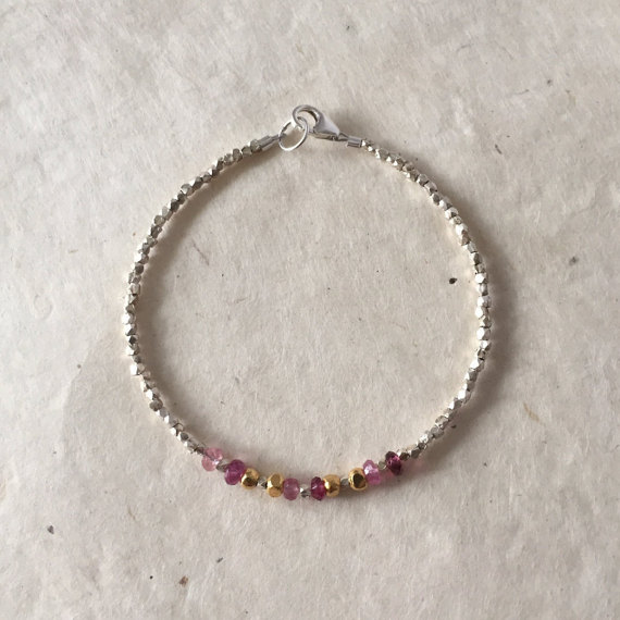 At a Great PriceTourmaline Karen Hill Tribe Thai Gold and Silver Beaded Bracelet, Sundance Style, Boho Stacking Bracelet 3-4 mm Code- WAR6451