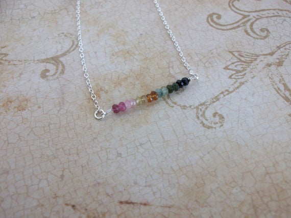 At a Great PriceTourmaline Sterling Silver Bar Pendant Sterling Silver Chain Unique Bar Multi Tourmaline Gemstone Necklace Different Sterling Necklace 3mm Code- WAR9083