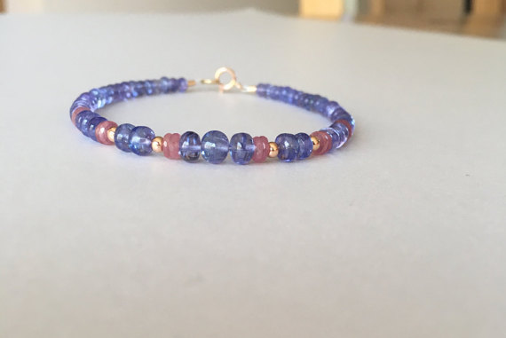 At a Great PriceTranslucent tanzanite, tanzanite bracelet, pink sapphire bracelet, fine jewelry, 14k rose gold, sapphire jewelry, tanzanite jewelry, unique 5 - 2 mm Code- WAR6313
