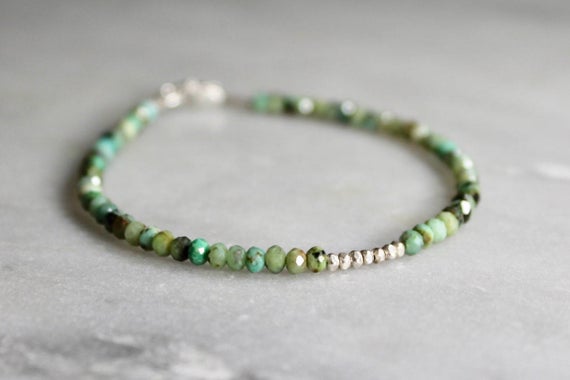 Turquoise Bracelet with Spiritual Meaning | Turquoise Beaded Bracelet | Simple African Turquoise Bracelet with Gold or Sterling Silver 3-4mm Code- WAR6050