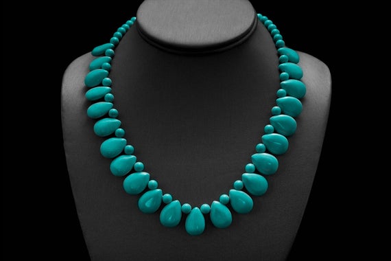 At a Great PriceTurquoise Necklace, Beach Jewelry Ideas, Floral Blue Necklace, December Birthstone, Genuine Turquoise, Blue Flower Necklace 17mm and 6mm Code- WAR9062