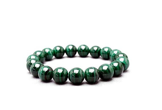 Unique Wedding Gift 10mm Green Natural Malachite Stretchable Bracelet Round, Smooth 18cm for mens, womens, gf, bf and adults.