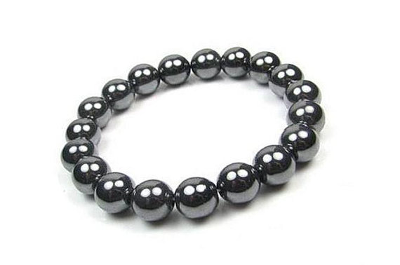 At a Great PriceUnique Wedding Gift 10mm Silver Hematite Stretchable Bracelet Round, Smooth 18cm for mens, womens, gf, bf and adults.
