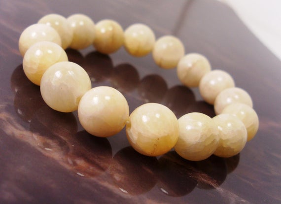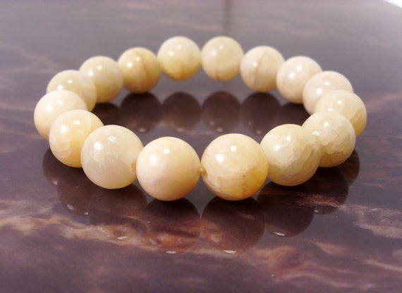 At a Great PriceUnique Wedding Gift 12mm Stretchable Yellow Yellow Jadeite Bracelet Round, Smooth 7.5" for mens, womens.