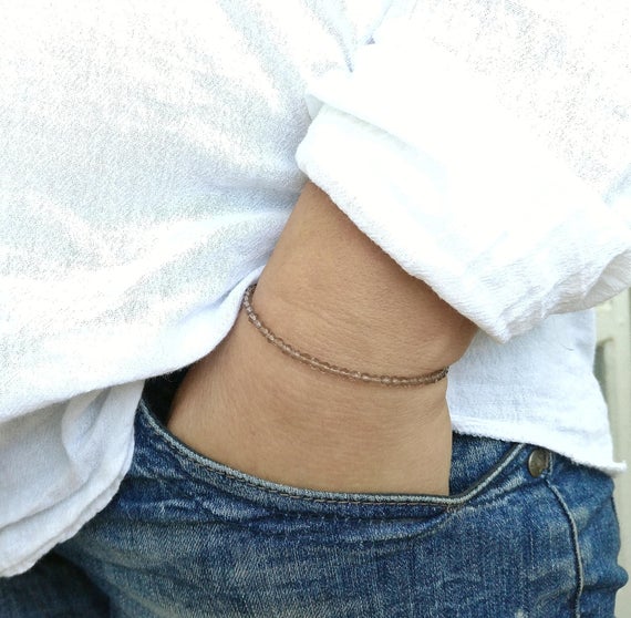At a Great PriceUnique Wedding Gift 4mm Brown Smoky Quartz Stretchable Bracelet Round, Smooth 18cm for mens, womens, gf, bf and adults.