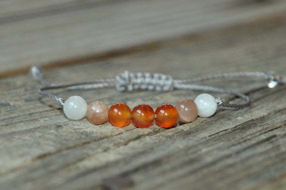 At a Great PriceUnique Wedding Gift 6mm Adjustable Multi Carnelian & Sunstone & Moonstone Bracelet Round, Smooth 7" for mens, womens, GF, BF, Adults.