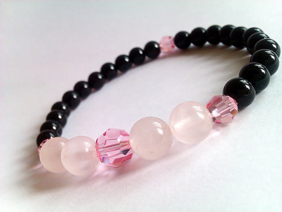 At a Great PriceUnique Wedding Gift 8mm Multi Colour Rose Quartz & Black Onyx Stretchable Bracelet Round, Smooth 18cm for mens, womens, gf, bf and adults.