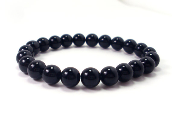 At a Great PriceUnique Wedding Gift 8mm Stretchable Black Black Onyx Bracelet Round, Smooth 7" for mens, womens.