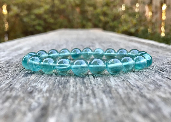 At a Great PriceUnique Wedding Gift 8mm Stretchable Blue Blue Green Flourite Bracelet Round, Smooth 7" for mens, womens, gf, bf & Adult.