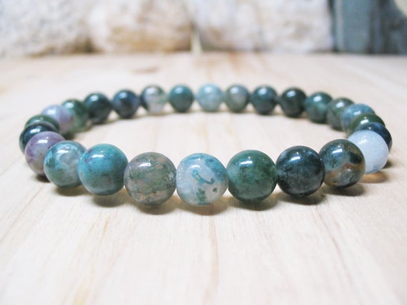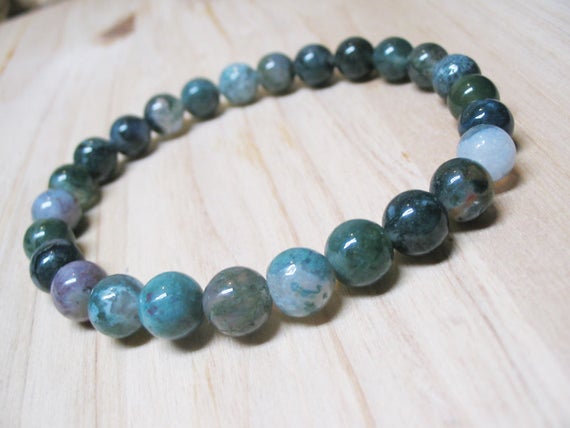 At a Great PriceUnique Wedding Gift 8mm Stretchable Multi Moss Agate Bracelet Round, Smooth 7" for mens, womens, GF, BF, Adults.