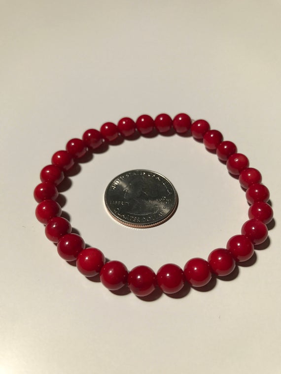 At a Great PriceUnique Wedding Gift 8mm Stretchable Red Red Coral Bracelet Round, Smooth 7" for mens, womens, gf, bf & Adult.