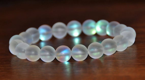 At a Great PriceUnique Wedding Gift 8mm White Moonlight Quartz Stretchable Bracelet Round, Smooth 18cm for mens, womens, gf, bf and adults.