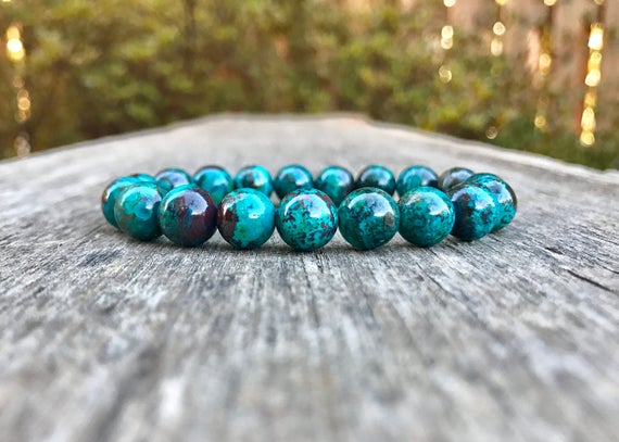 At a Great PriceUnique Wedding Gift 9mm Stretchable Green Mexican Chrysocolla Bracelet Round, Smooth 7.5" for mens, womens, gf, bf & Adult.