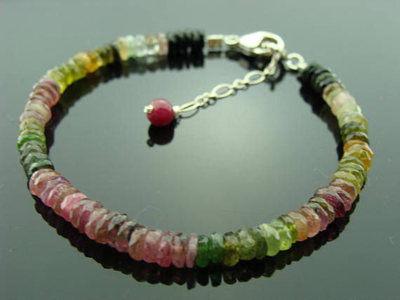 At a Great PriceWatermelon Tourmaline Sterling Sliver Bracelet 3-4mm Code- WAR6575
