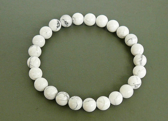 At a Great PriceWhite Howlite Bracelet for men gemstone bracelet Stretch Beaded Bracelet women protection bracelet Healing Stone meditation bead bracelet 8mm Code- WAR9152