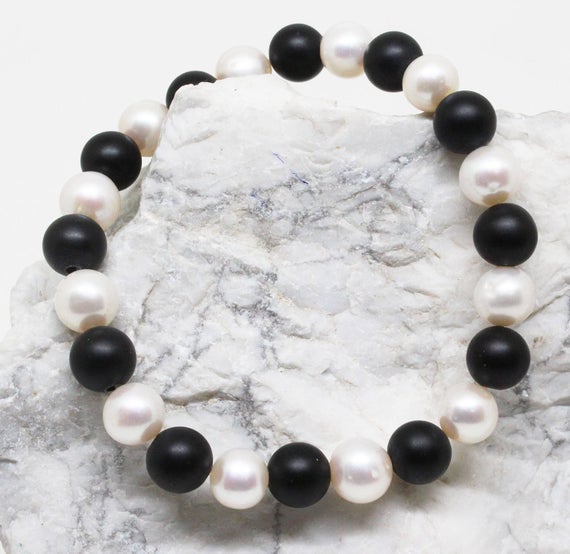 At a Great Pricewhite pearl, matt onyx, necklace round ball smooth 7.5'strand gemstone beads, jewelry supplies for jewelry making, bulk beads, for meditation jewellery for Reiki Healing gemstone 7.5-8.5mm