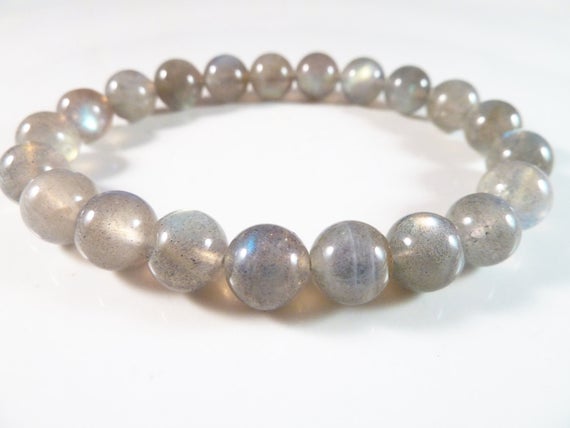 Wholesale 9mm Stretchable Gray Labradorite Bracelet Round, Smooth 7.5" for mens, womens, gf, bf & Adult.