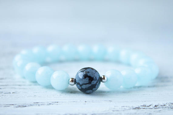 At a Great PriceYoga Bracelet Sterling Silver Fertility Bracelet Grounding Bracelet Moms Daughter Bracelet Cousins Gift Amazonite Bracelet Obsidian Bracelet 8mm Code- WAR9196