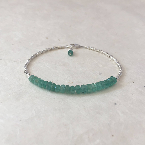 Zambian Emerald Karen Hill Tribe Thai Silver Beaded Stacking Bracelet, Sundance Style, 4mm Code- WAR6395